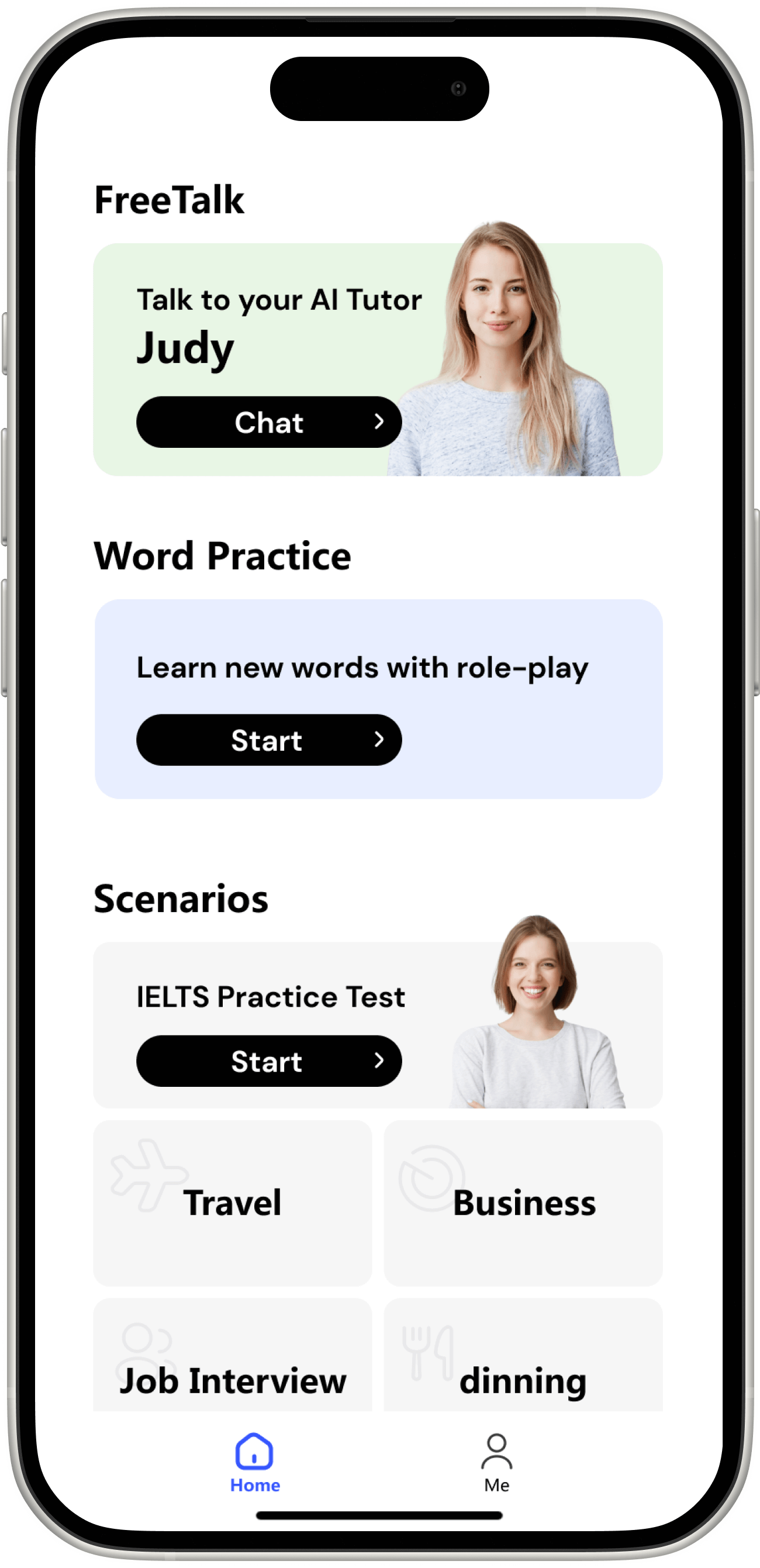 Immerse in conversations like friendly chats, IELTS speaking tests, business meetings, job interviews...